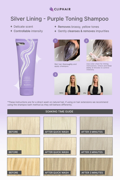 Cliphair’s Silver Lining – Purple Toning Shampoo is specially designed to banish yellow and brassy tones to rebalance blonde hair. The paraben free formula also removes impurities and product build up leaving the hair feeling clean and hydrated. Perfect for blonde, lightened or grey hair that’s lost its cool.