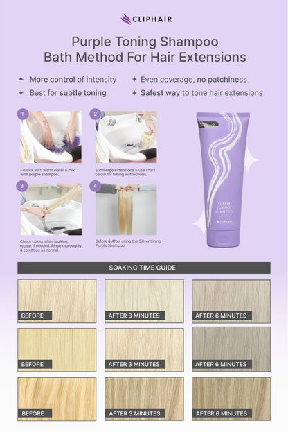 The Purple shampoo gave enough tone without staining the extensions, which is a great thing, as with other brands which I use they often leave purple stains on the extensions.
