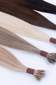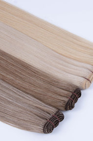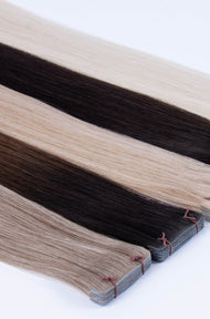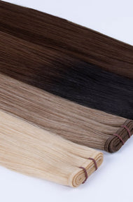 Tape ins are best for quick, seamless application. Nano rings offer a super discreet method, perfect for thin and fine hair or for clients who enjoy wearing their hair up. Wefts (also known as weaves) are perfect for full-bodied transformations with versatile application methods.